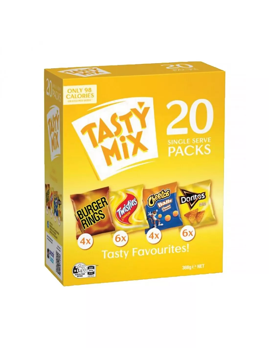 The Tasty Mix Box 20pkt 365g offers a flavorful combination of iconic Australian snacks in perfectly portioned packs. Featuring a mix of Burger Rings, Twisties, Cheezels, and Doritos, this variety box is designed to satisfy all kinds of snack cravings with bold, cheesy, and savory flavors. Whether you’re packing lunch, entertaining guests, or enjoying a treat at home, this 20-pack is a versatile option for all ages. The individually wrapped portions make it easy to grab and go, offering convenience without compromising on taste.